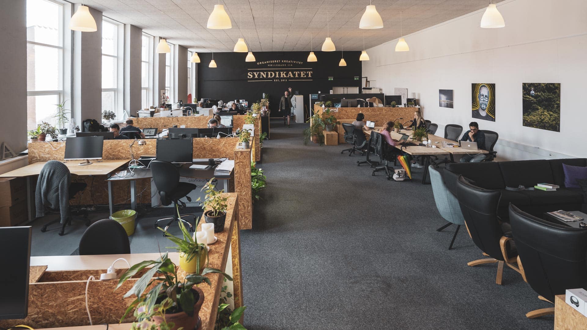 Syndikatet er et co-working space beliggende i de kontrastfyldte omgivelser i Møllegade, centralt placeret i hjertet af Aalborg. Vi har 28 faste kontorpladser og 10 flexpladser i et åbnet miljø og 6 pladser i et separat lokaler. I alt ca. 750 kvadratmeter.
